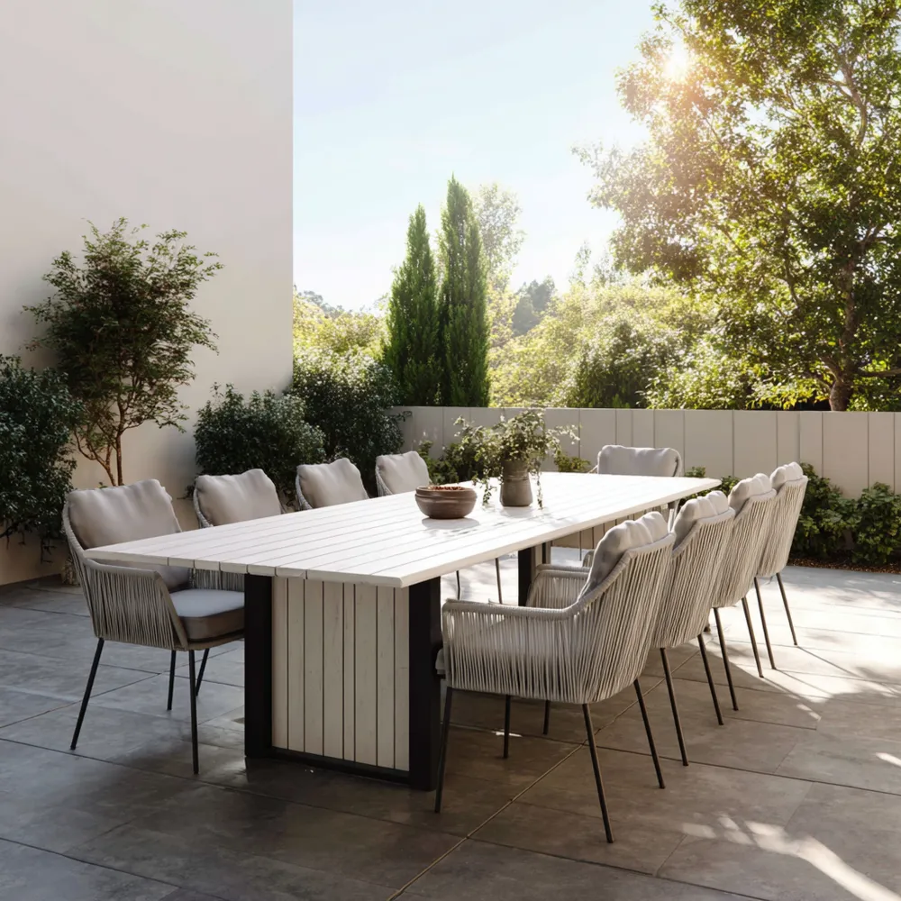 Ensemble table et chaises de jardin aluminium 300x100x75 cm - Beige - Design moderne